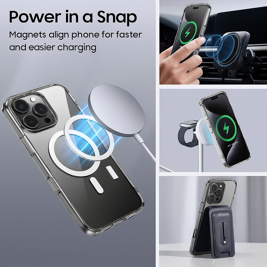 1. MagSafe Compatible – Built-in magnetic ring ensures perfect alignment for fast and secure MagSafe charging and accessory attachment.