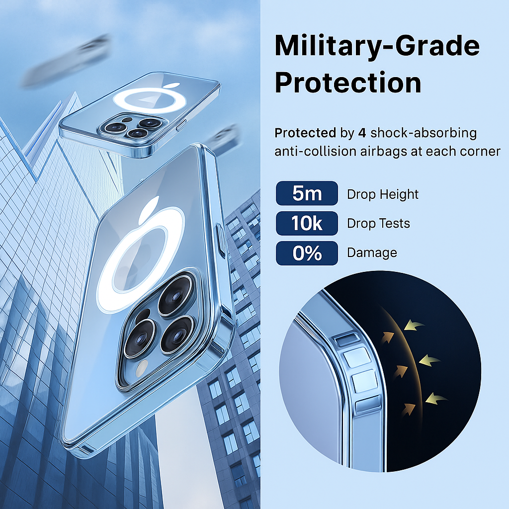 1. MagSafe Compatible – Built-in magnetic ring ensures perfect alignment for fast and secure MagSafe charging and accessory attachment.