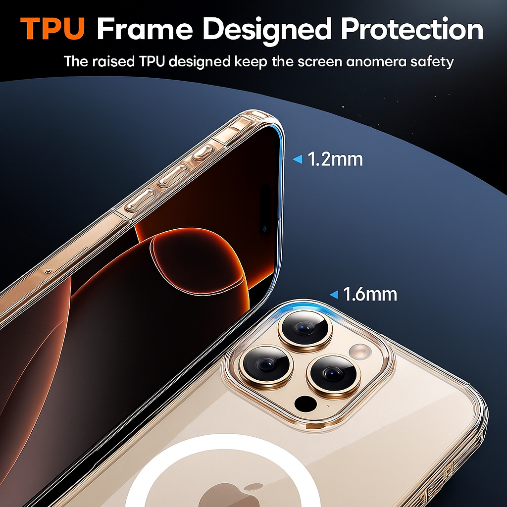 2. Crystal Clear Design – Made from high-quality transparent TPU or polycarbonate material to showcase the phone’s original color and design.