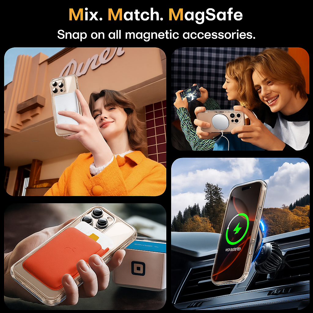 1. MagSafe Compatible – Built-in magnetic ring ensures perfect alignment for fast and secure MagSafe charging and accessory attachment.